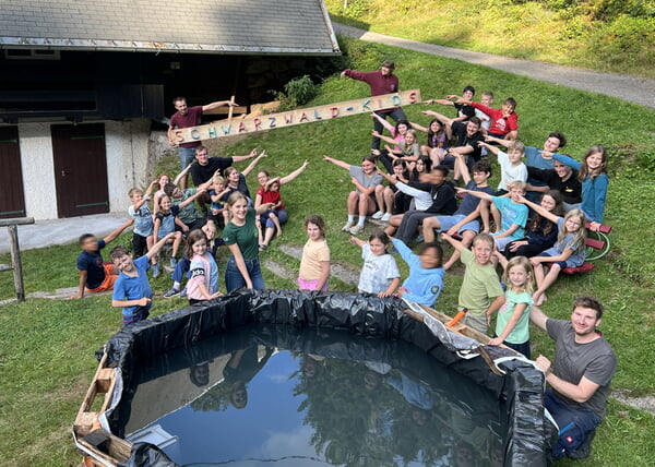 Mit dem Motto „Gemeinsam wachsen, gemeinsam feiern“ wurde das Camp zu einem Ort, an dem nicht nur Freundschaften geknüpft, sondern auch bleibende Erinnerungen geschaffen wurden. Vom Baumhausbau über Geländespiele bis hin zu einem selbstgebauten Pool – es gab keinen Mangel an Action und Kreativität. Der Wald wurde zum Spielplatz, die Hüpfburg war ein echtes Highlight für die Kids, und die Abenteuerausflüge führten zu spannenden Entdeckungen, sei es die Zeit mit den Alpakas oder auf der aufregenden Seilbahn.
