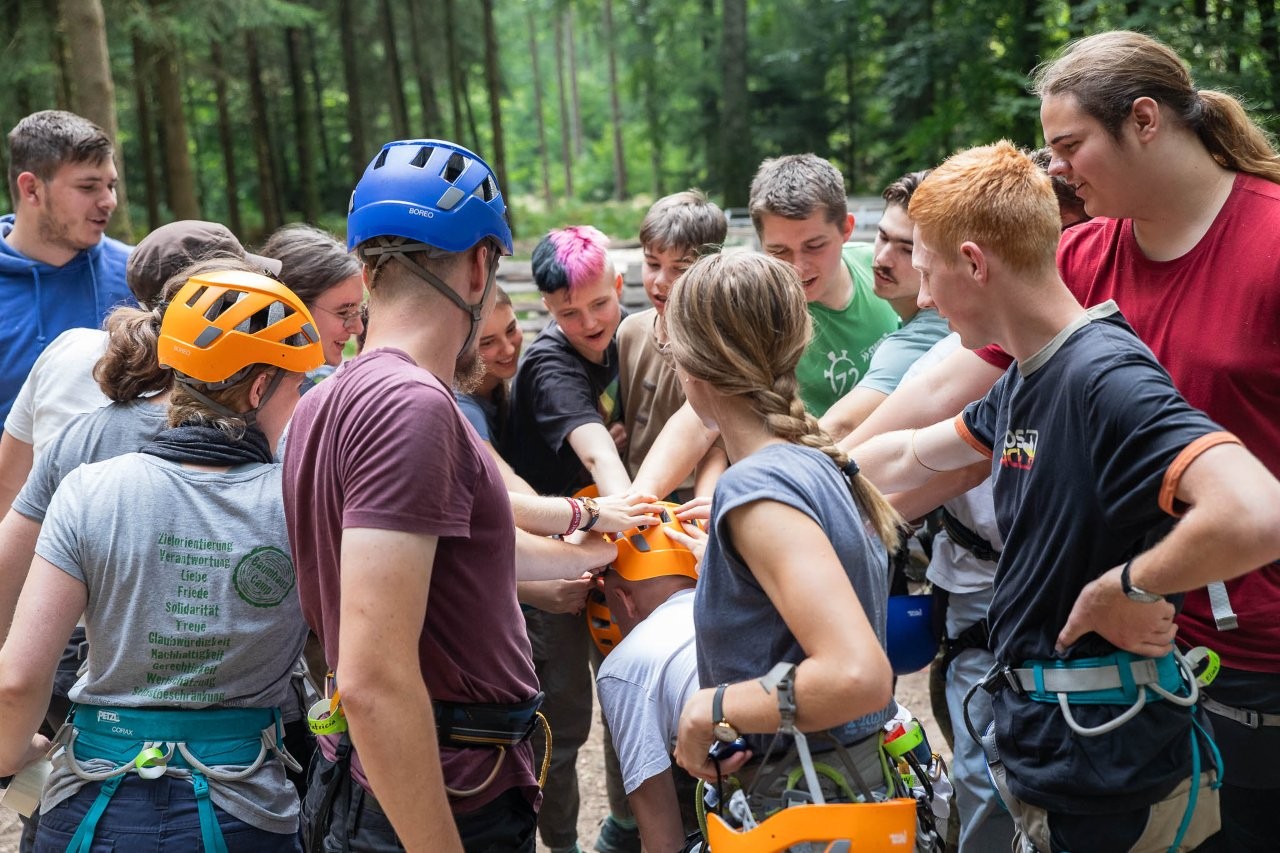 31 Teilnehmer und 30 Mitarbeiter haben gemeinschaftlich unser Baumhaus weitergebaut. Baumhausbauen ist ein Gemeinschaftsprojekt: Niemand kann allein schwere Stämme nach oben ziehen und entgegennehmen. Niemand kann allein einen Trägerbalken waagrecht einbinden. Und niemand kann allein innerhalb von sieben Bautagen fertig werden. Wir haben es als Team und als #BaumhauscampFamily geschafft – und wir sind mega stolz darauf. Diese Teamleistung verbindet und schafft eine Vertrauensbasis, die in so kurzer Zeit einzigartig ist. Jeder, der schon einmal beim Baumhauscamp dabei war, kann bestätigen, dass es ein besonderes Gottesgeschenk ist, wie gestärkt wir nach diesen zehn Tagen aus dem Wald gehen. Immer mit dabei ist Jesus.