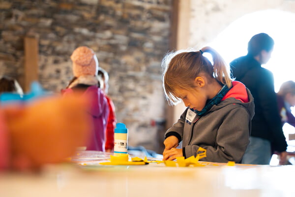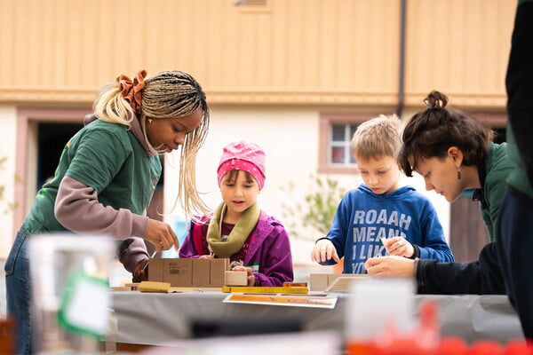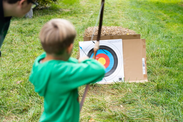 Ganz praktisch geschieht das in Workshops wie Bogenschießen, Outdoor-Techniken, Kreatives Werken und Holzwerkstatt, wo die Kinder Neues lernen und ihr Können erweitern.
